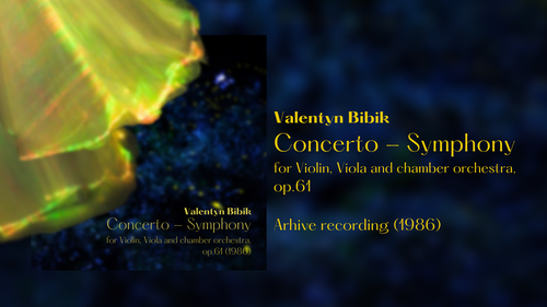 Concert-symphony for violin, viola and chamber orchestra op. 61 (1986) is unique in its structure and content. It is a monolithic construction, born from a clear and catchy motif, around which it constantly evolves. The genre synthesized the features of a double concerto and a symphonic cycle, which is a carrier of deep musical thought and contains several critical dramatic functions: development, conflict, and contrast. And although the Concert-symphony as a whole does not have bright contrasts, its spontaneous development, alternating solo episodes, etc. attracts the listeners from the first seconds. The composer`s colleague, conductor Roman Kofman, said about Bibik's music: "It makes you listen to yourself, forgetting about belonging to the music field. Therefore, I am happy when I can listen to it, as one listens to the music of nature - without delving into the chemical analysis of raindrops or the secrets of the refraction of the sun's rays."