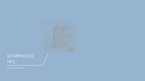 The Symphony was written in 1927 and immediately recognized as an outstanding phenomenon of contemporary music based on Ukrainian melodic sources. It won first place at the All-Ukrainian competition of the Leontovych Society. However, the fate of the score was tragic – the score was burned in a fire at the Kyiv Philharmonic in late 1928. Revutskyi reconstructed the symphony from memory only in the years 1939-1940. By the beginning of 1941, it had once again received the State Prize.