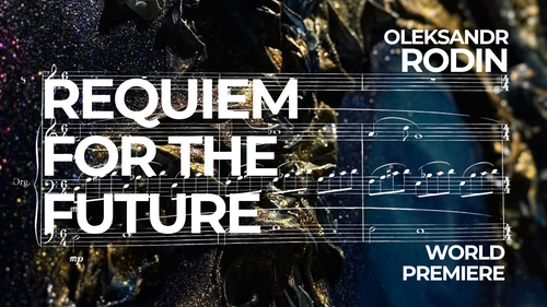 “Requiem for the Future” Олександра Родіна – це унікальний музичний жест сучасності: реквієм не за минулим, а за майбутнім, яке людство ризикує втратити. Твір для органа і сопрано, написаний до відкриття художньої виставки митця у Львівському органному залі, поєднує звучання голосу, органа і фрагментів канонічних латинських текстів у масштабну емоційну драму. На перетині тривожного сьогодення, памʼяті про пережите й непевності прийдешнього Родін формує філософську медитацію про цінність життя, відповідальність і надію.
